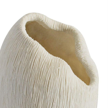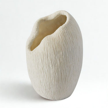 With its fluid silhouette and matte finish, this sculptural vase brings a quiet sense of movement and form to any surface. Inspired by organic shapes and coastal textures, it stands beautifully on its own or with a few simple stems. Whether styled on a console, side table, or open shelf, the scalloped white vase offers effortless presence subtle, but full of character.