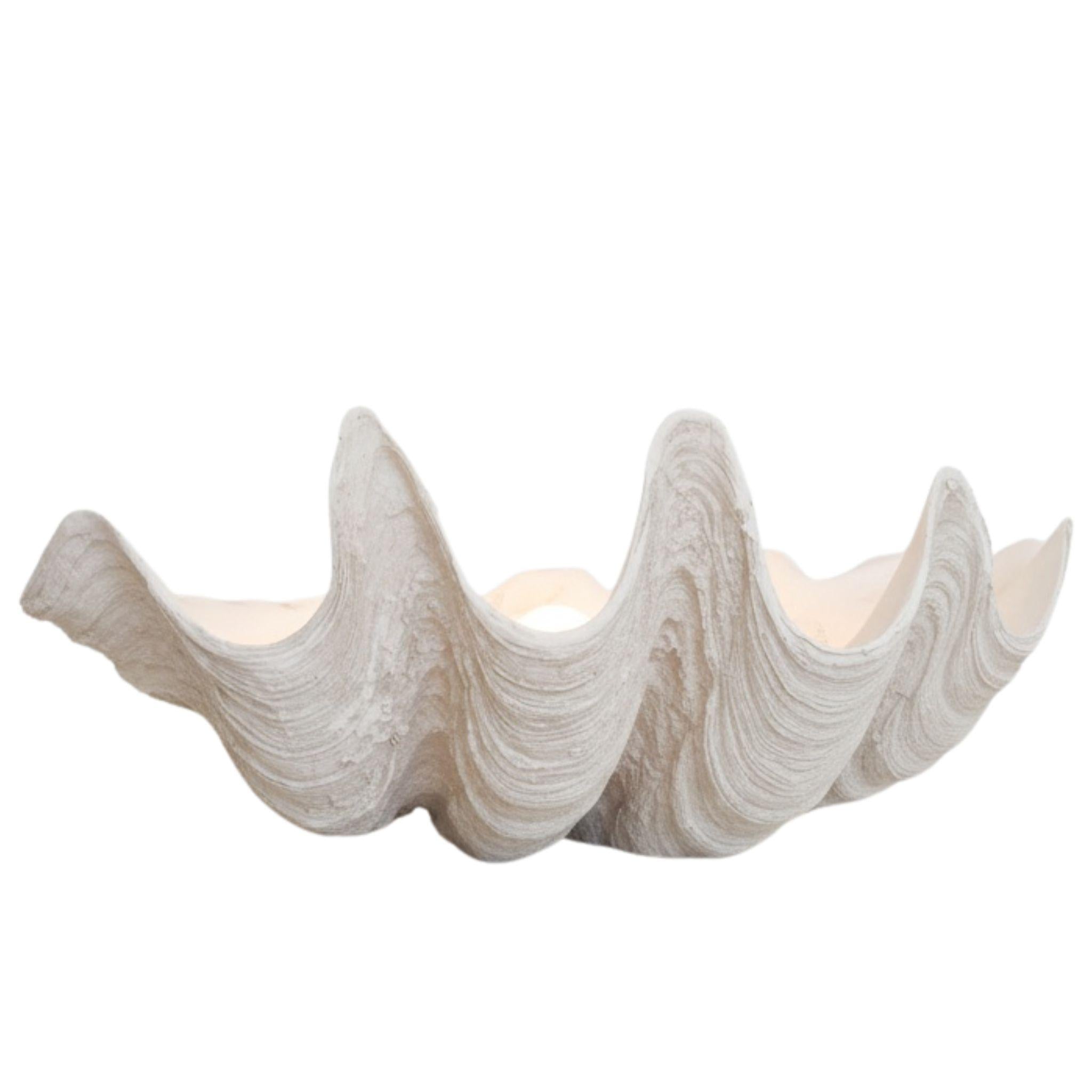This large clam shell bowl features textured details that give it a realistic and sculptural appearance. The oversized, organic shape of the Clam Shell Bowl makes it a striking coastal-style home accessory that adds a refined, natural element to any tabletop. This functional piece can hold everything from fruit and keys to decorative orbs, or it can be left empty as a standalone statement. Its white finish and intricate ridges make it an ideal choice for a breezy seaside interior or a minimalist modern home. Whether used as a centerpiece on a dining table or as an accent in the bathroom, it enhances your living space with a textured, high-end feel.