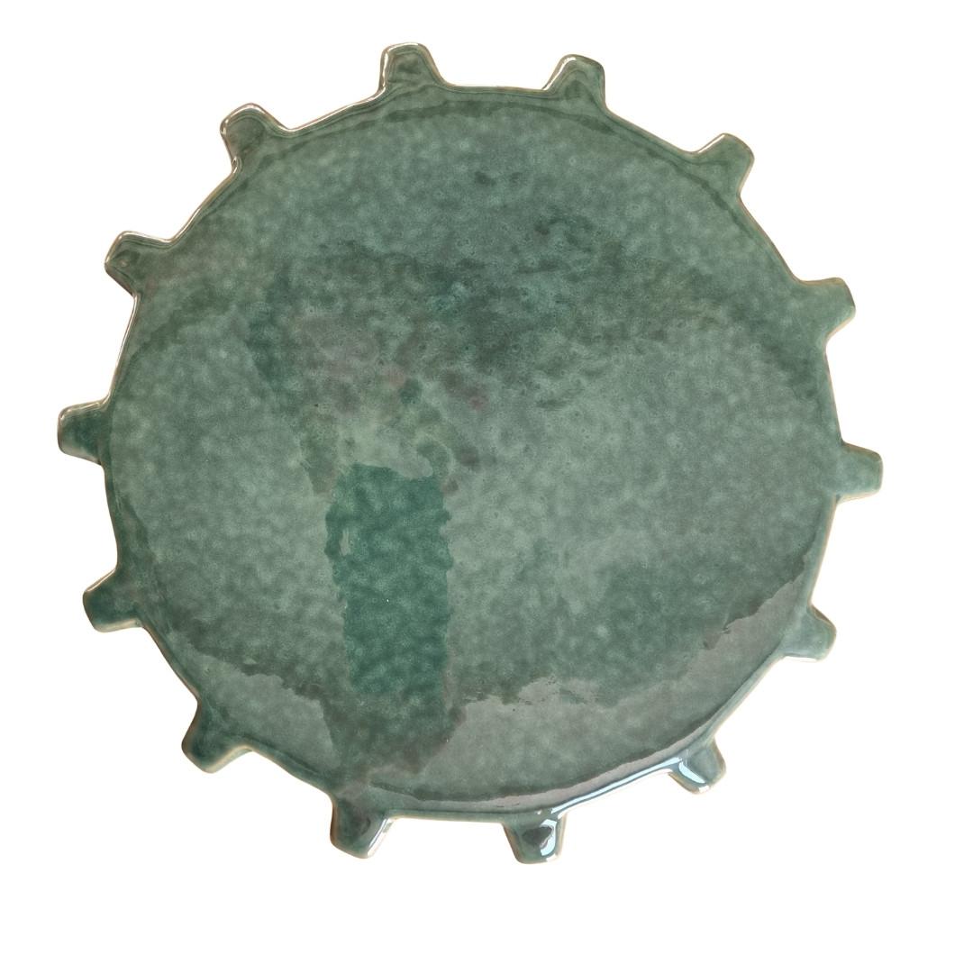 This sculptural side table features vertical rectangular blocks arranged in staggered rows, creating striking texture and depth. The glossy jade finish adds a vibrant pop of colour, while deep shadows between blocks create dramatic dimension. Use it as a patio accent table or ceramic garden stool, indoors or out. Perfect for living rooms, patios, or bathrooms where its spa-like elegance shines.