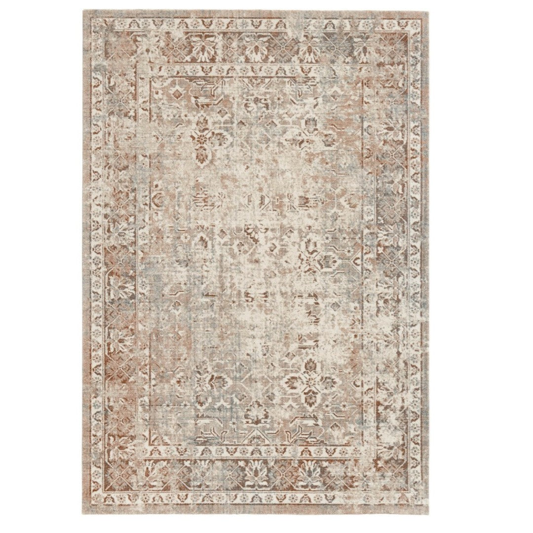 - A distressed look with softened patterns in neutral tones that provide a high-end vintage feel.