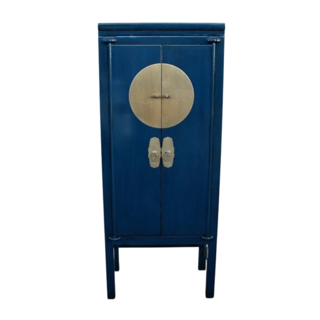 Maximize vertical space with the 195cm Dynasty Tall Hallway Cabinet. This freestanding storage cabinet features a slim depth, making it an ideal organization solution for narrow entryways, bedrooms, or luxury living spaces. The two doors open to reveal three roomy internal shelves and an extra-deep bottom storage bay, perfect for linens, oversized household items, or even a luxury bar setup. Choose from three finishes!