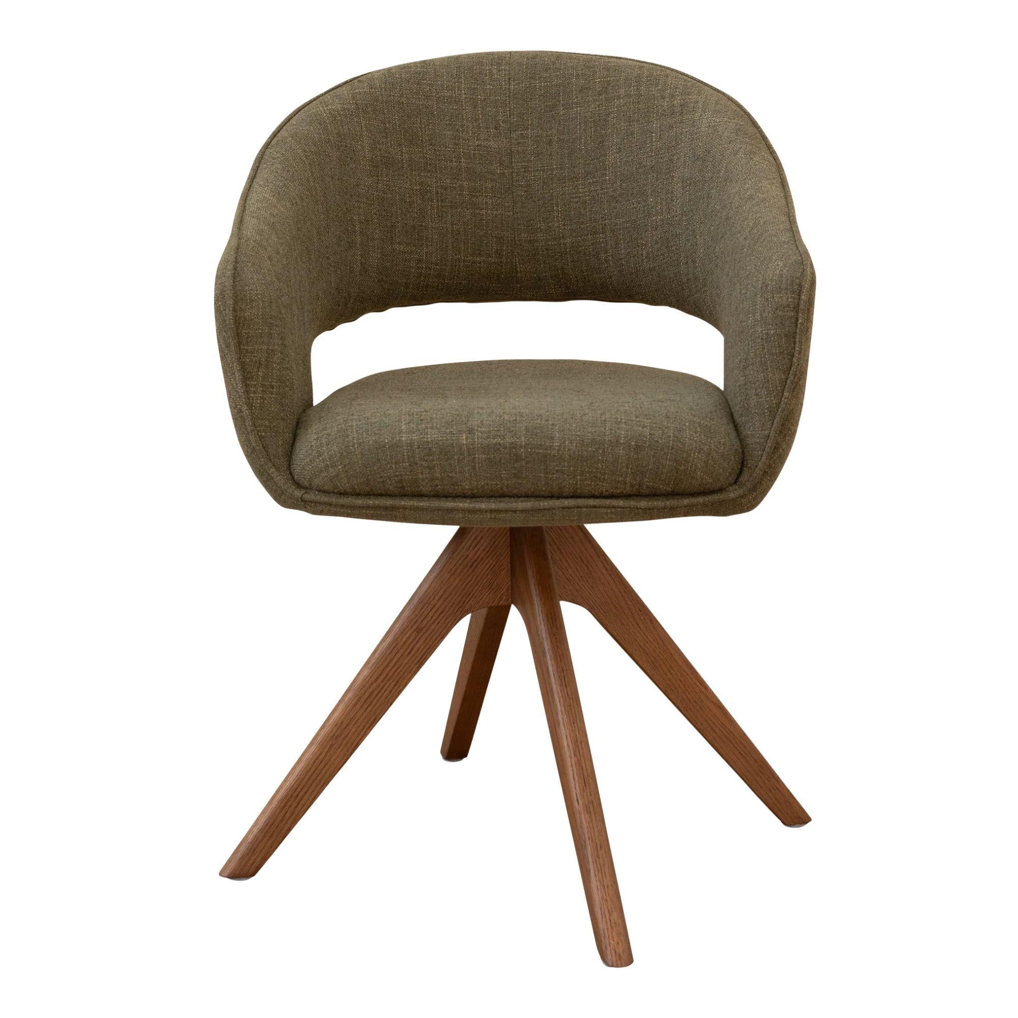 • Upholstered swivel dining chair covered with Global fabric (100% Polyester), solid oak legs.