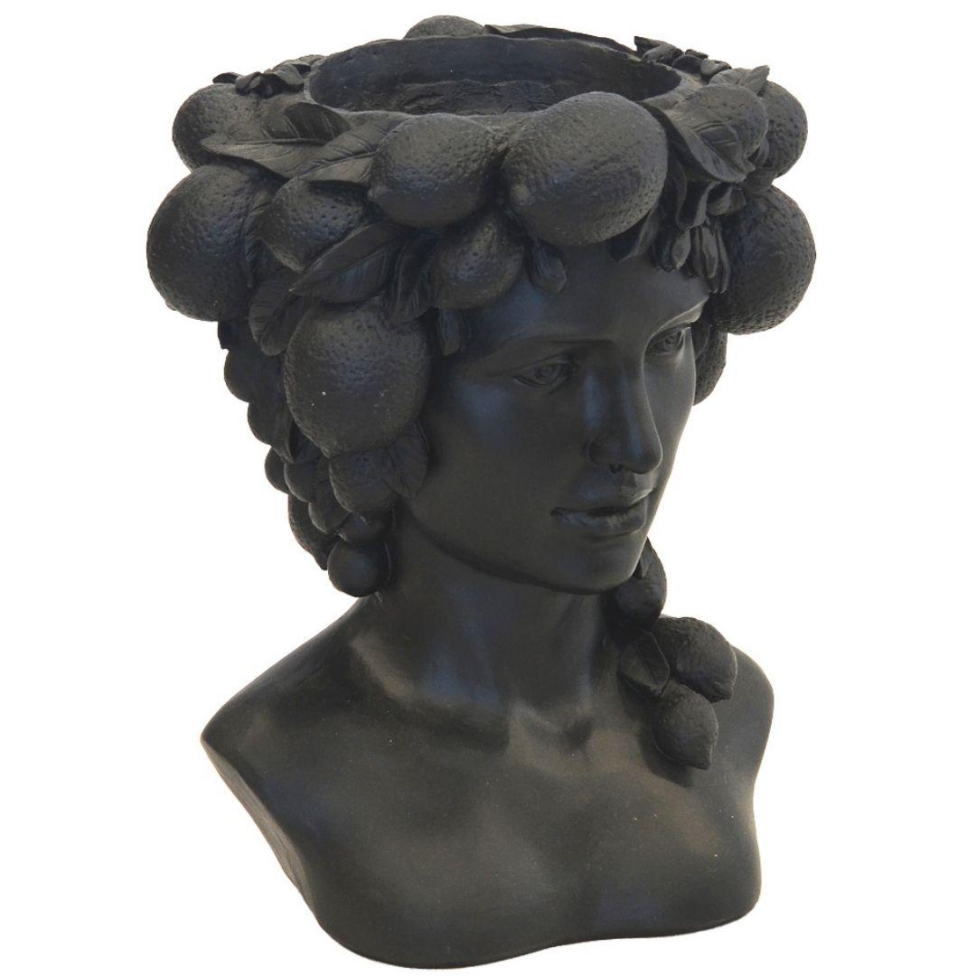 Add a sculptural touch to your home with the Goddess Head Vase, featuring a beautifully detailed face and a crown of textured lemons and leaves that cascades down the back and shoulder. Crafted from lightweight resin, this vase works beautifully with faux foliage, or small indoor plants, bringing a luxurious, high-end look to any room. Available in classic white or dramatic black.