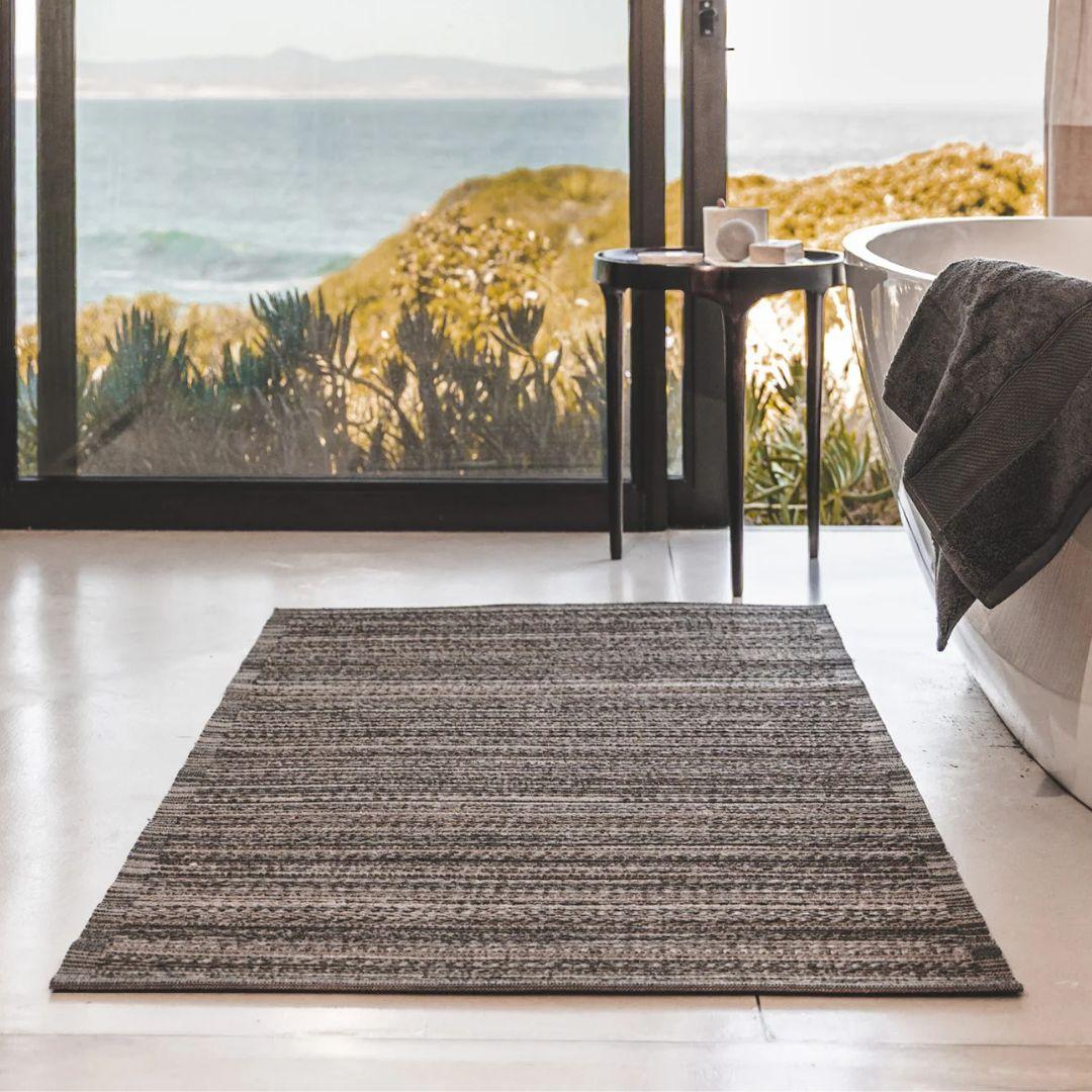 The perfect runner rug for bathroom spaces, the Lucian Outdoor Runner offers a durable, low-maintenance option with a darker, muted undertone that adds a touch of subtle sophistication. Made from 100% recycled PET polyester, this rug is suitable for both indoor and outdoor use, making it an eco-friendly and easy-to-style choice for high-traffic areas or wet zones.