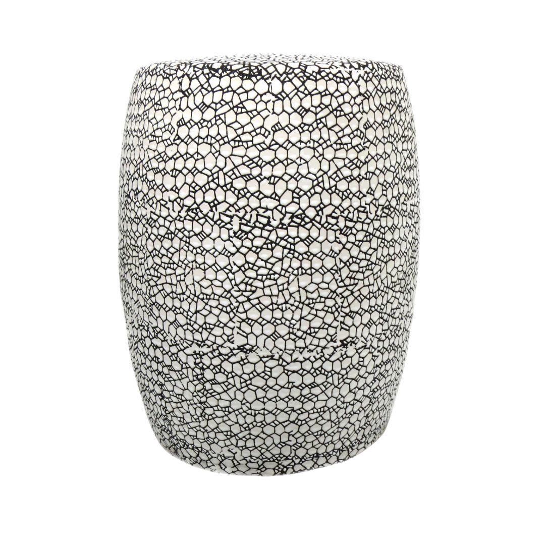 This ceramic side table brings sculptural elegance and bold character to your space. Crafted from durable ceramic with a striking black and white glaze, it’s beautifully weighty and solid, offering both form and function. Its rounded barrel shape gives it a distinctive presence, making it a unique accent table for any room. Ideal beside a couch, armchair, or as a stylish outdoor accent table, it also adds a sophisticated touch to a bathroom setting, making it the perfect surface for candles, rolled towels, or décor near the bath or shower. This timeless design blends artistry with practicality, elevating any modern interior.
