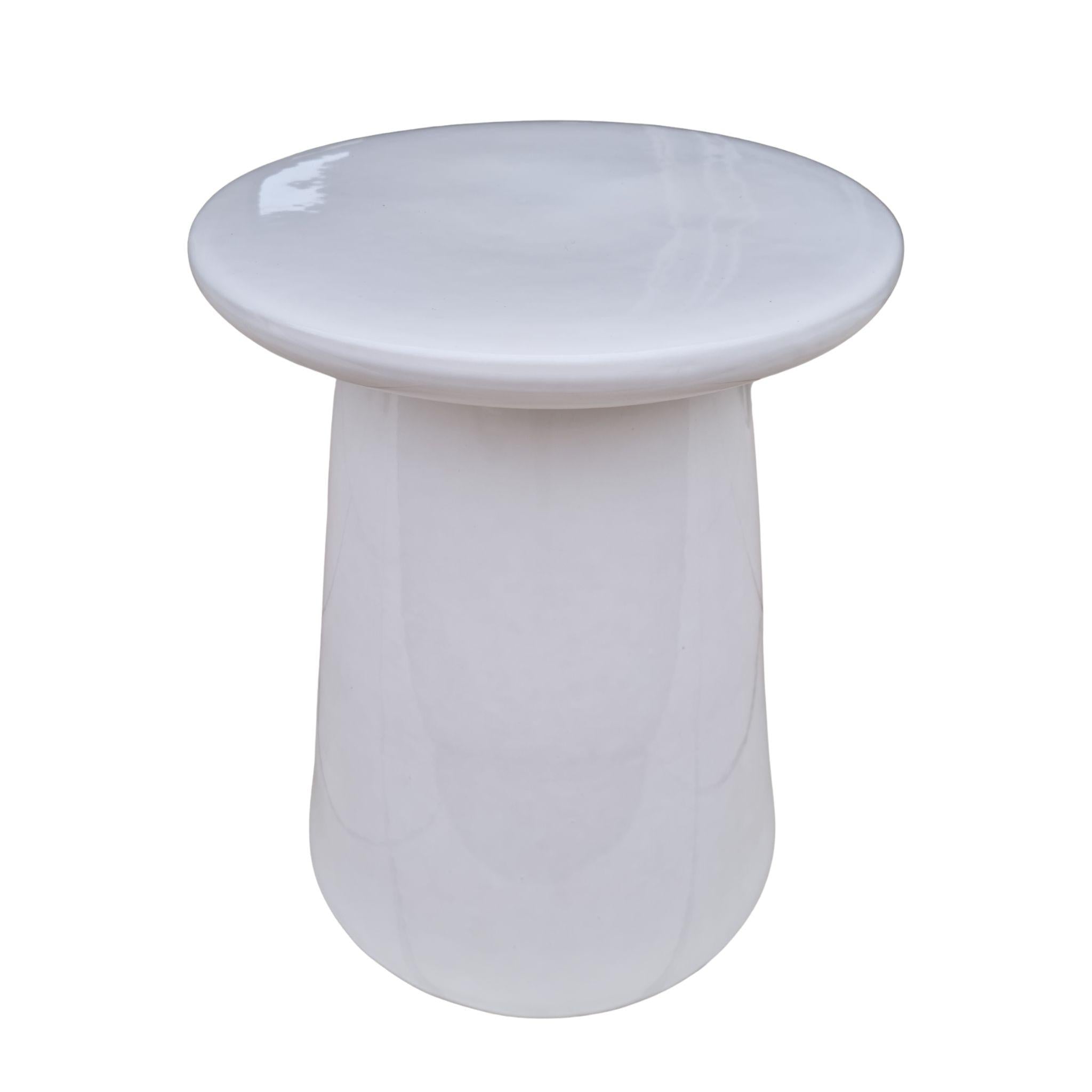 A sculptural side table designed to bring a clean, modern aesthetic and everyday function to your home. Made from ceramic in a classic white, this indoor, outdoor side table features a smooth gloss finish that works beautifully beside a sofa or outdoor patio. Its minimalist design makes it perfect for the bathroom, lounge, and balcony spaces as an accent table that brings fresh, airy character and versatility to your space.